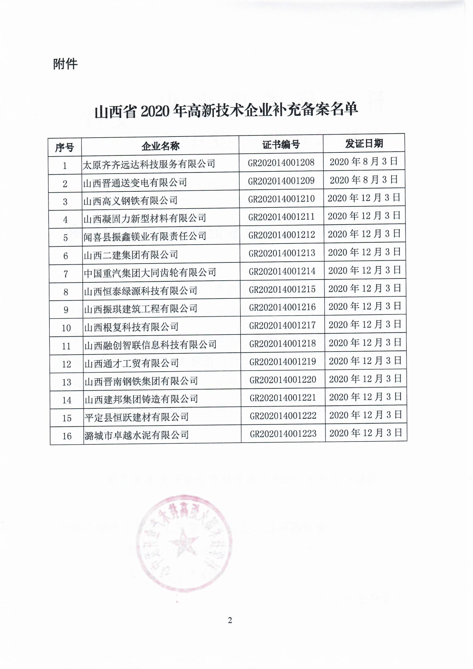 山西關(guān)于2020年高新技術(shù)企業(yè)補(bǔ)充備案的復(fù)函